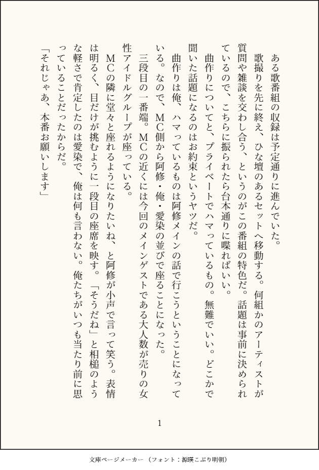 SSS(B) メーカーを使った小咄集。ほぼほぼかねあい。 propose2020-11-17Bハロパロ的な2020-11-17部屋に帰らない理由2020-11-17狐の手2020-11-17夜の隙間2020-11-17くものはなし2020-11-17